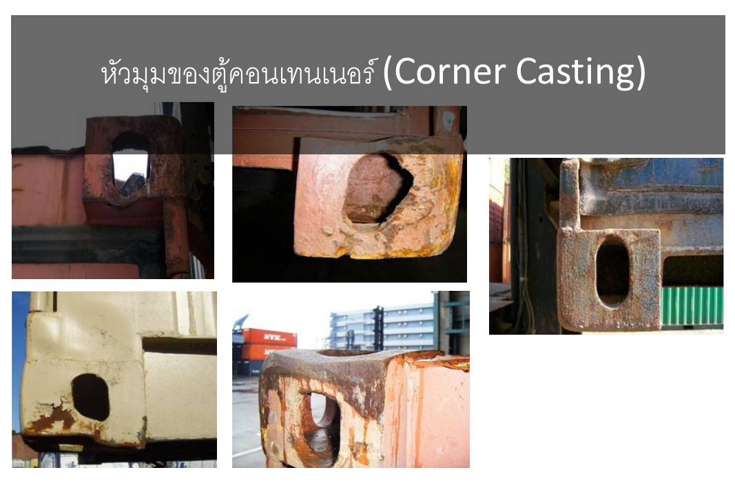 หัวมุมของตู้คอนเทนเนอร์ (Corner Casting) จึงมีโอกาสเกิดการสึกหรออย่างรุนแรง และเมื่อเวลาผ่านไปการกระแทกอย่างหนักนี้อาจนำไปสู่การแตกร้าวและการบิดเบี้ยวของโครงสร้างได้